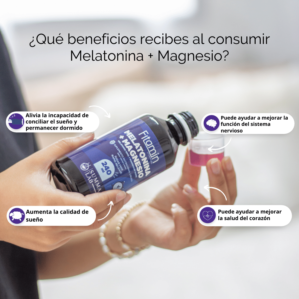 La melatonina es una hormona natural que ayuda a regular el ciclo de sueño y vigilia. El magnesio es un mineral que ayuda a relajar el cuerpo y la mente.